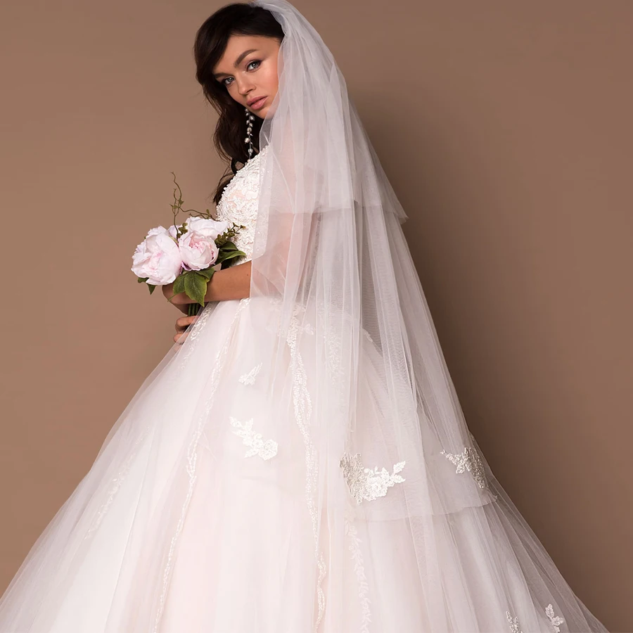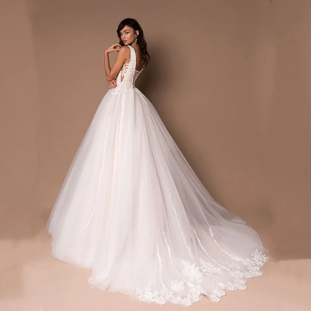 Свадебные платья для женщин 2021 Кружевная аппликация бисер o-образ...