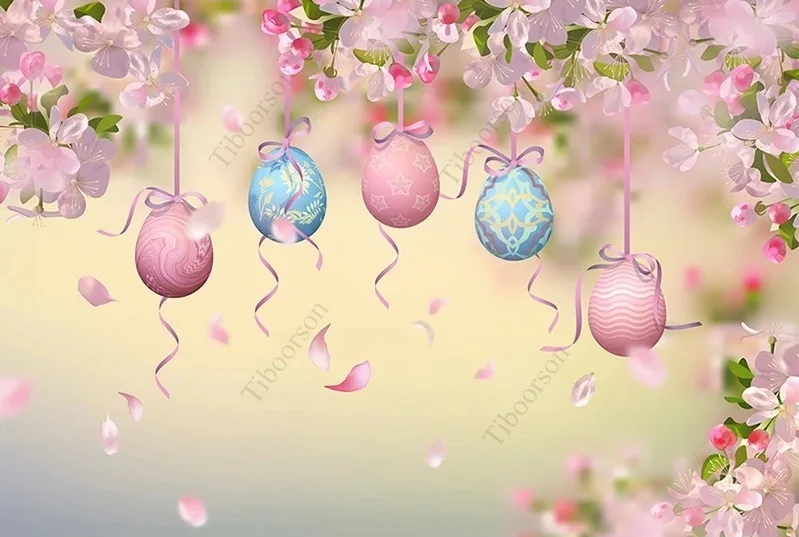 Фон для фотосъемки с изображением весенней Пасхи розовых цветов яиц вечерние чных декораций настраиваемый фон для фотостудии фотозона баннер
