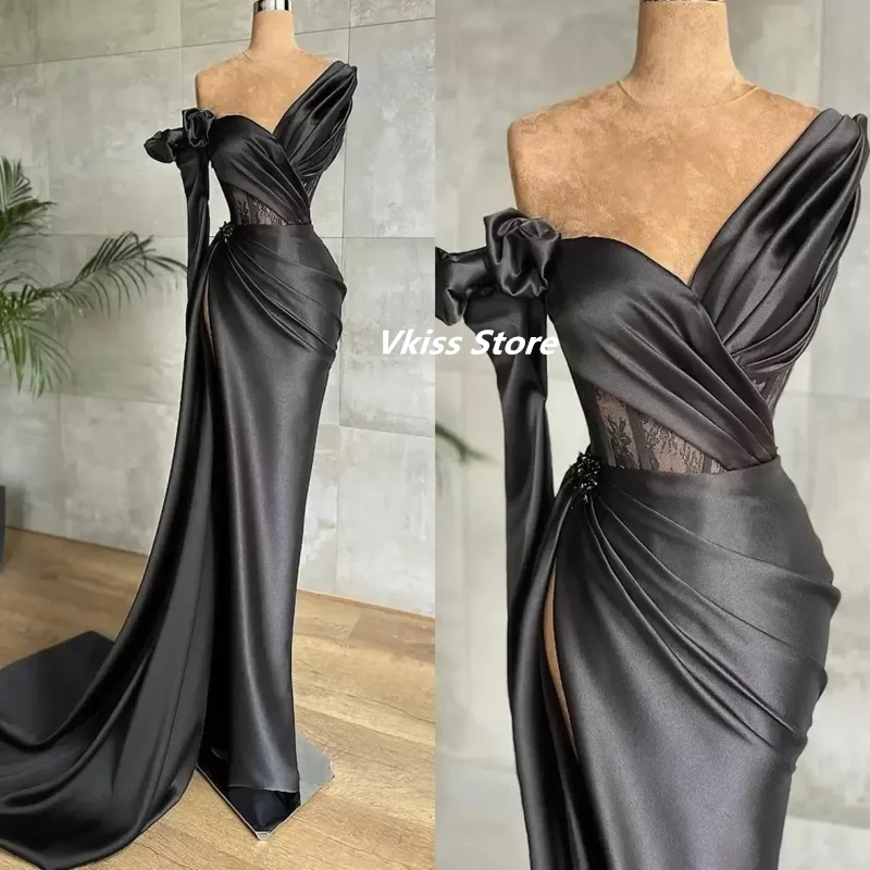 Черные сексуальные вечерние платья с прозрачным вырезом, кружевные платья с высоким разрезом для выпускного вечера, женское платье для особых случаев, лучшее вечернее платье