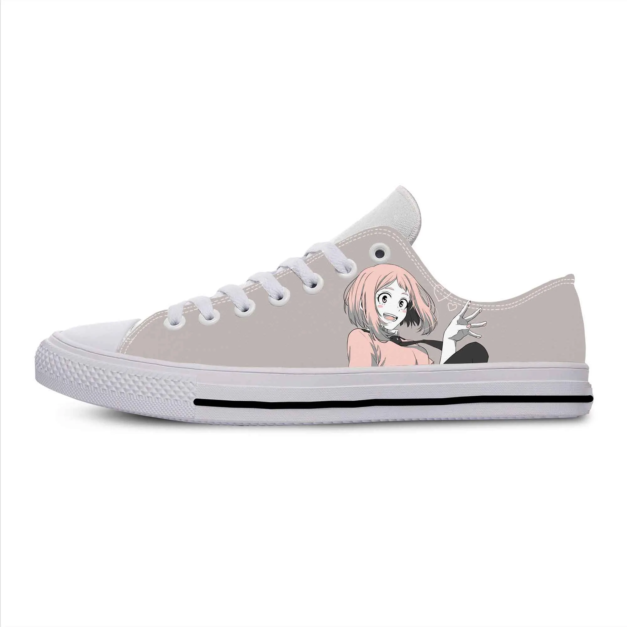 Аниме мультфильм моя геройская Академия Uraraka Ochako Симпатичные повседневные тканевые туфли с низким верхом дышащие легкие 3D печати мужские женские кроссовки