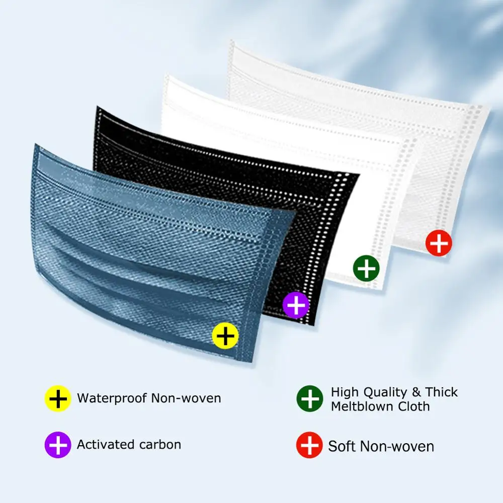 10-200 шт., одноразовые маски для взрослых с фильтром из активирова...