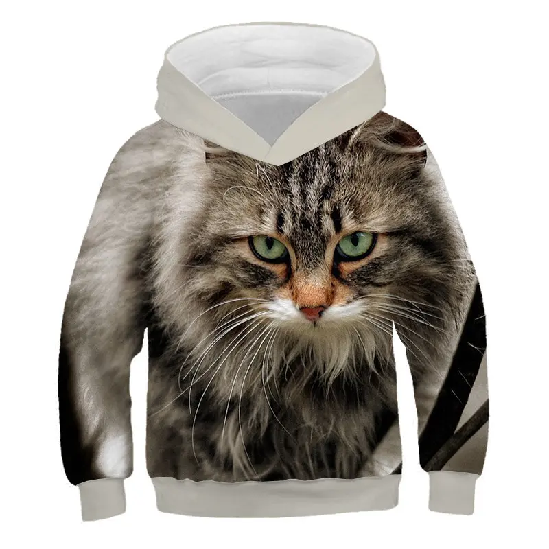 Свитшот для мальчиков и девочек с 3D рисунком кота, Детская Повседневная Толстовка, пуловер, уличное повседневное Свободное пальто на осень