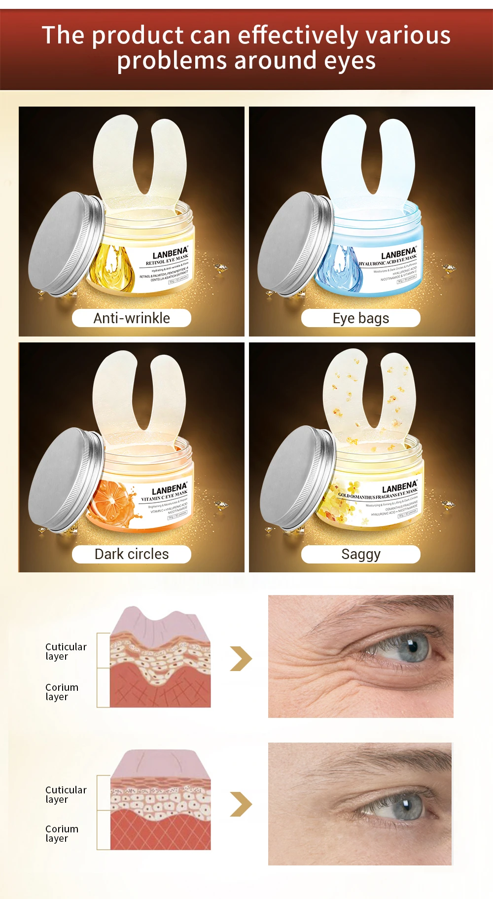 50 шт.коркорт. Маска для глаз ретинол патч для глаз витамин C против морщин Гиалуроновая кислота увлажняющая подтягивающая волоконная пленка инструмент для ухода за кожей лица