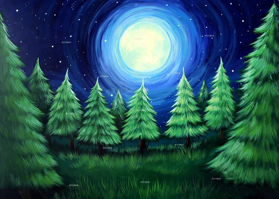 Виниловый фон для детской фотосъемки с изображением зеленого леса м...
