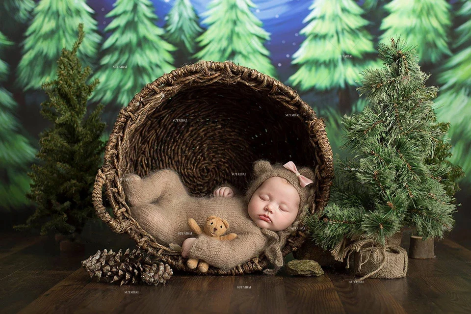 Фон для фотосъемки новорожденных с изображением весеннего леса