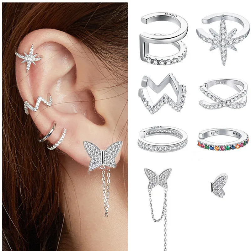Серьги-клипсы женские, корейские, без отверстий, с цирконом, клипсы...