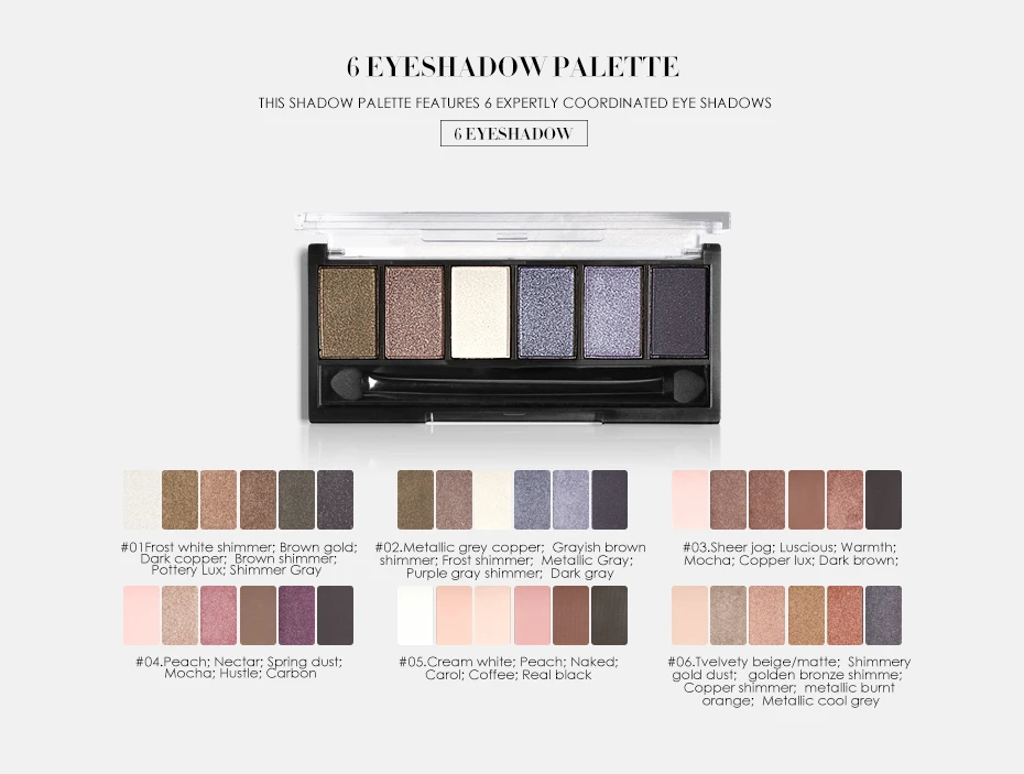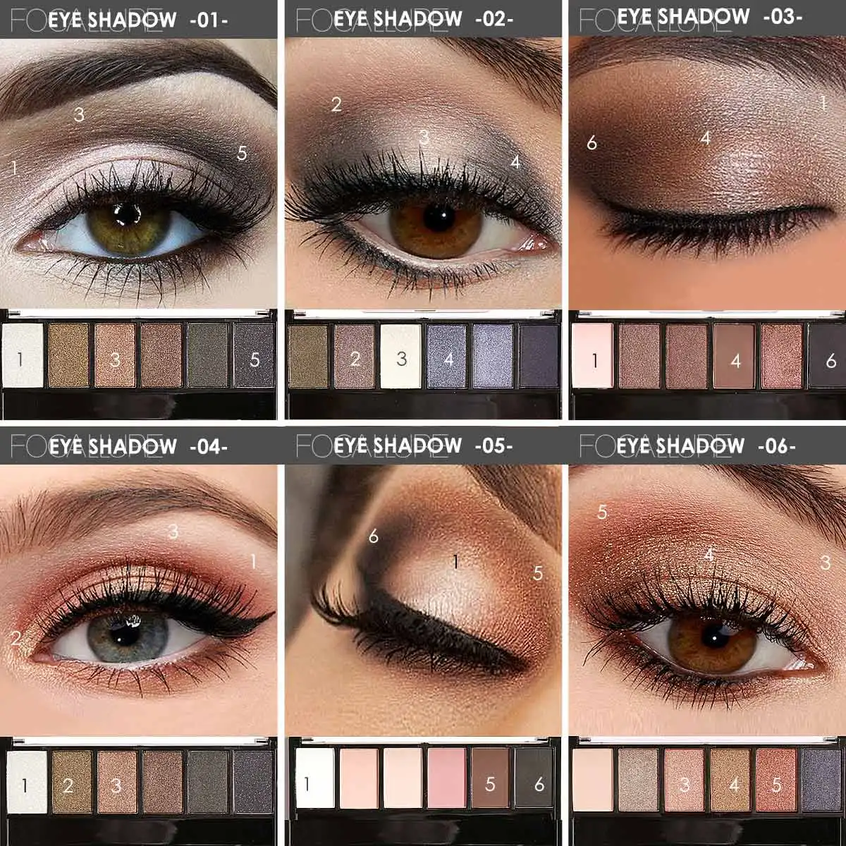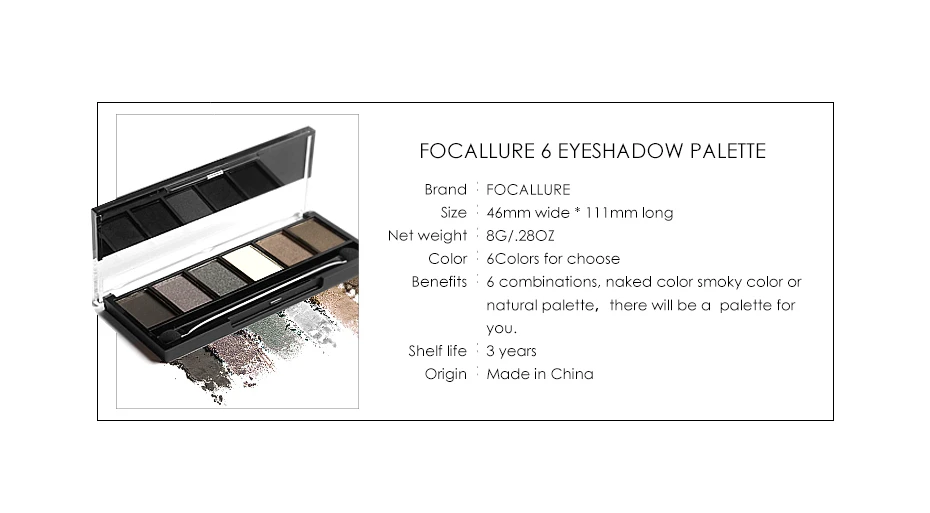 FOCALLURE 6 цветов Тени для век Палетка Гламурная Тень для век смоуки Айз мерцающие блестящие гладкие кремовые бриллианты
