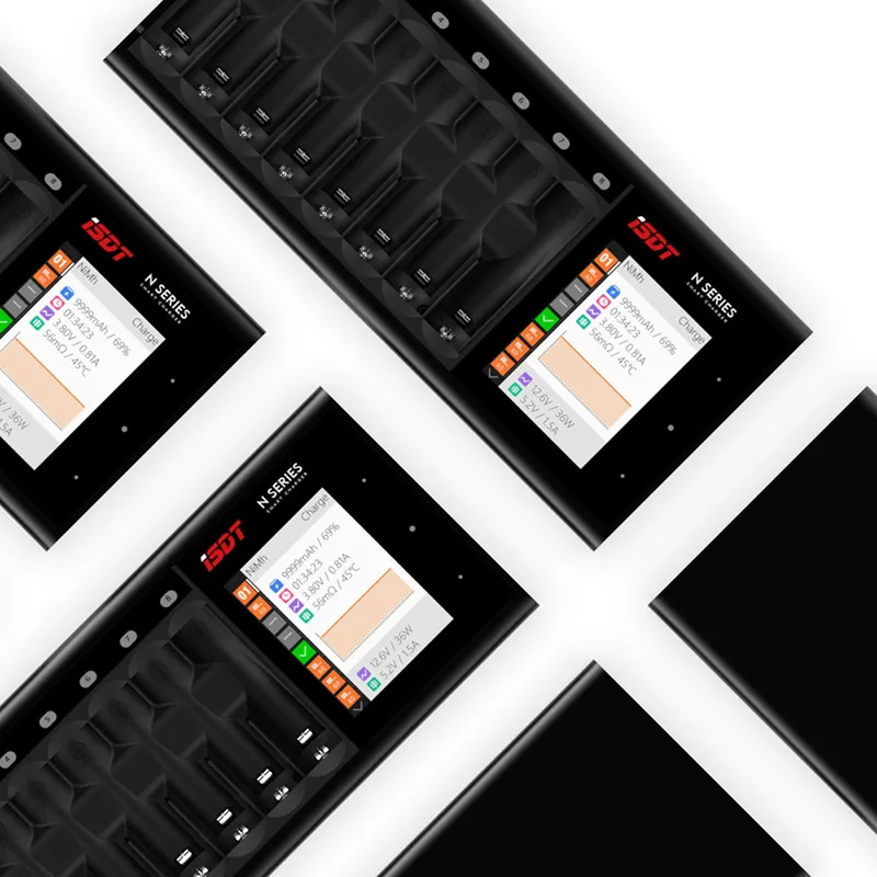 2. Совместимость различных типов батарей, все-в-одном управление для литий-ионных, LiHV, LiFe, NiMH, NiCd и NiZn батарей, автоматическая идентификация типа батареи с интеллектуальным алгоритмом зарядки.