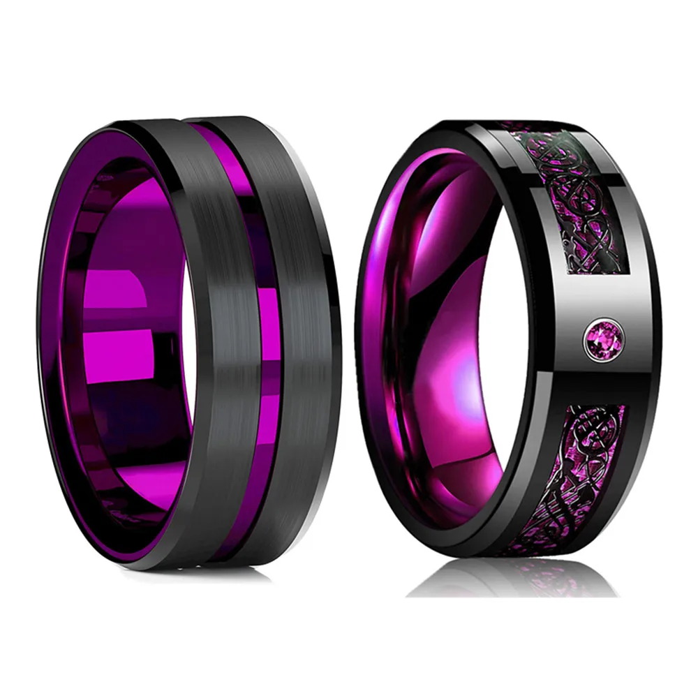8 мм классическое мужское черное вольфрамовое фиолетовое кольцо-паз для мужчин кельтский дракон кольцо инкрустация фиолетовый циркон мужской браслет из углеродного волокна для свадьбы