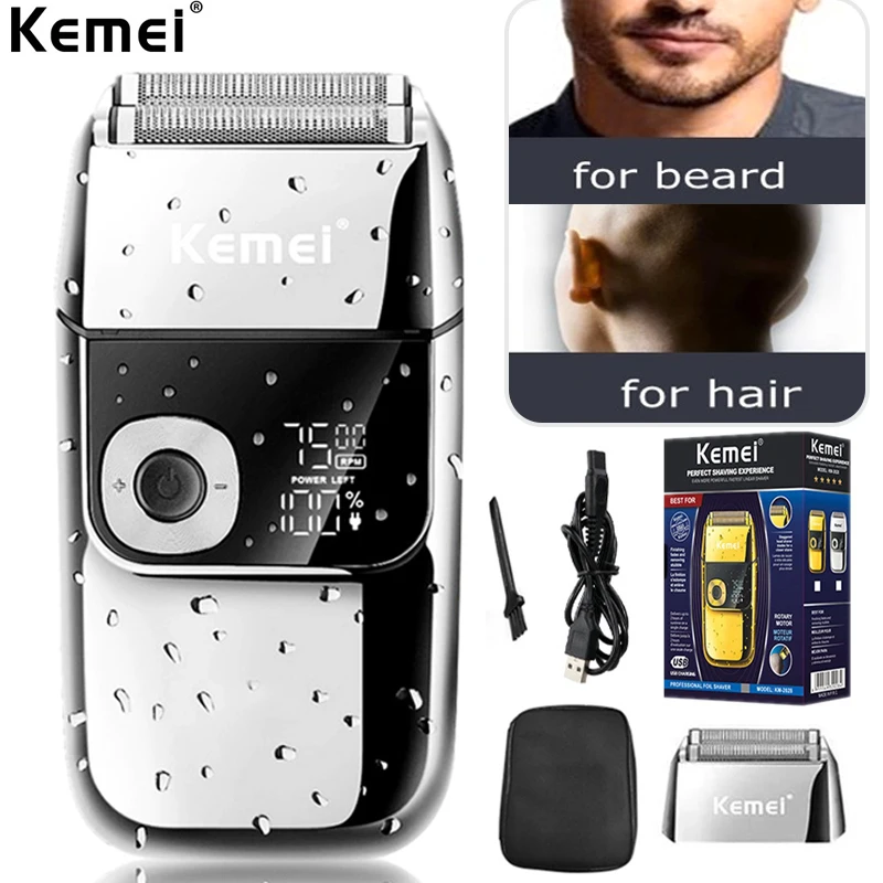 Kemei электробритва для мужчин триммер для волос Бритва для бороды 2 в 1 бритвенная стрижка машина ЖК-дисплей USB Перезаряжаемый инструмент для ухода 5