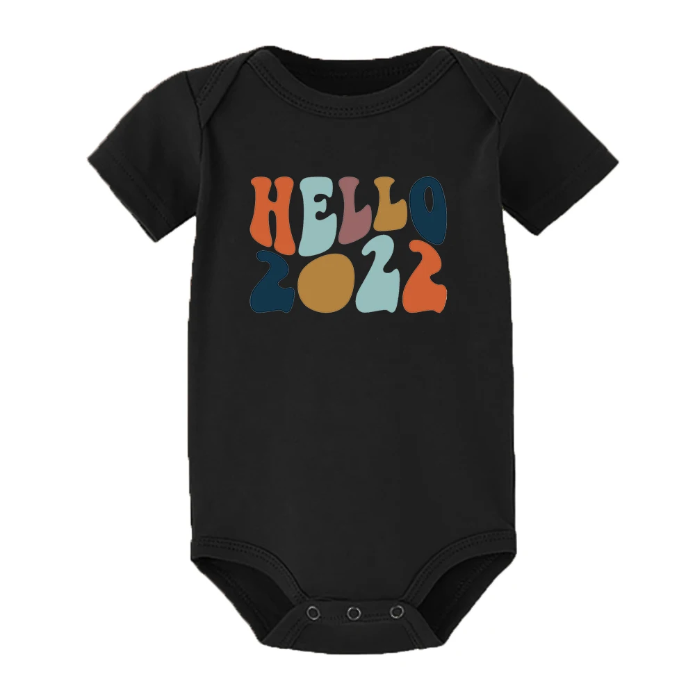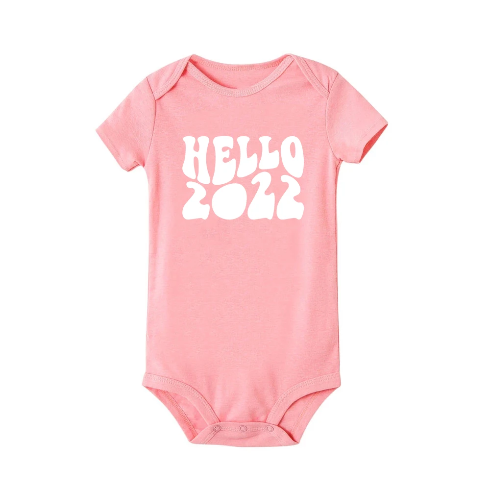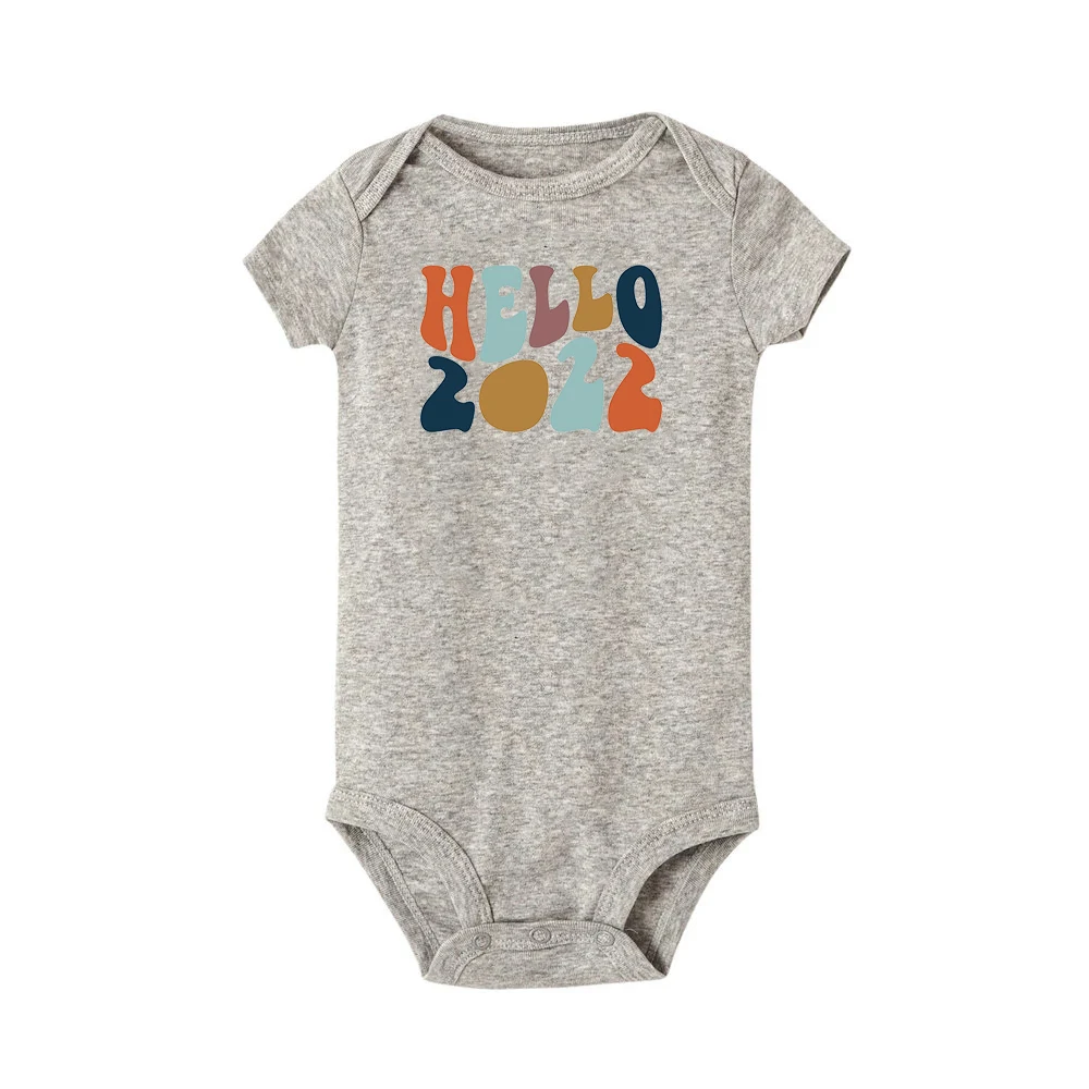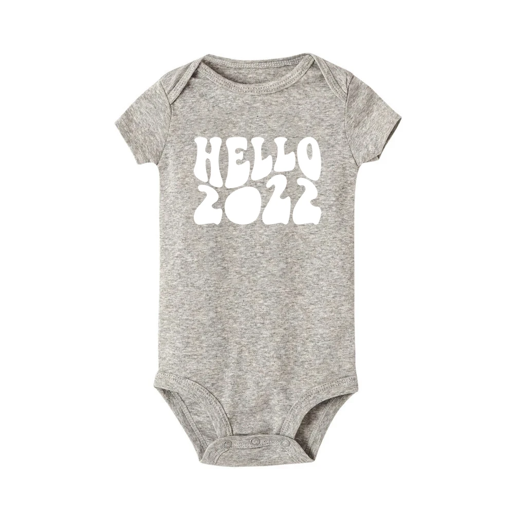 Hello 2022 Летний комбинезон для новорожденных мальчиков и девочек с коротким рукавом для объявления беременности на новый год унисекс