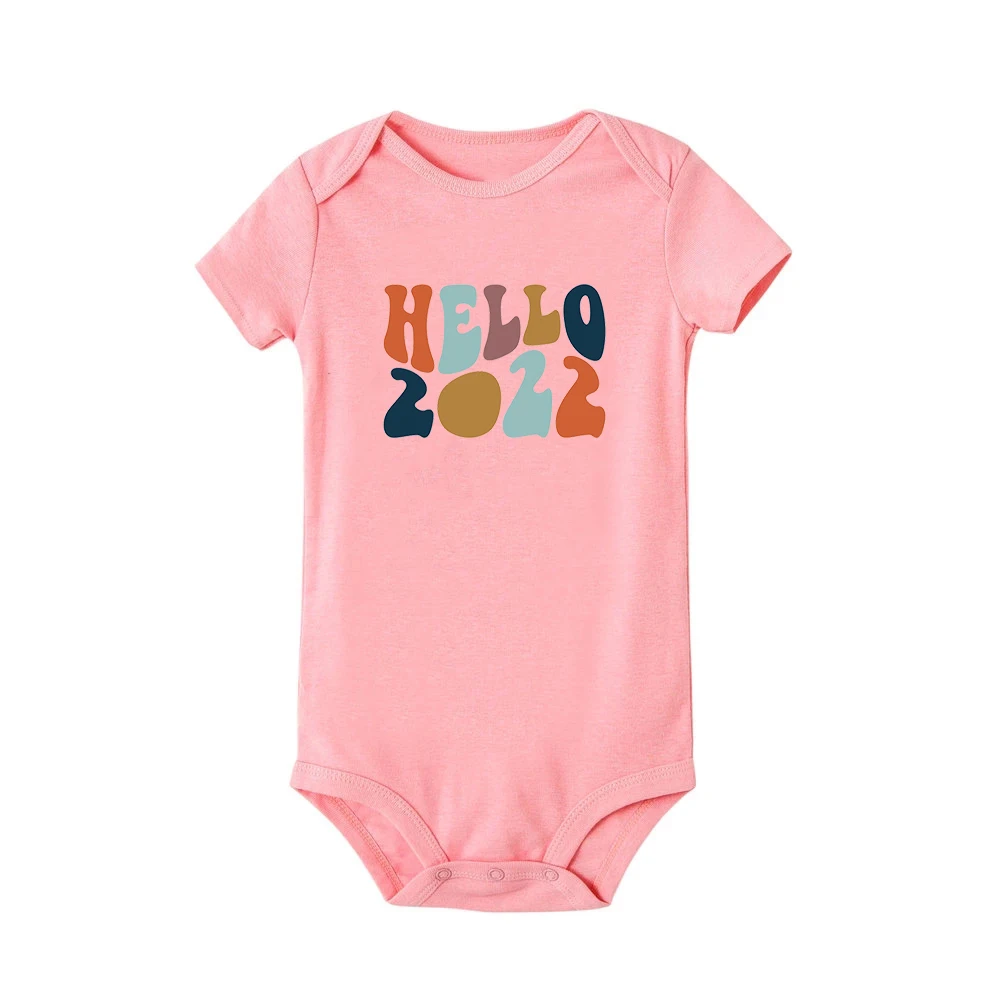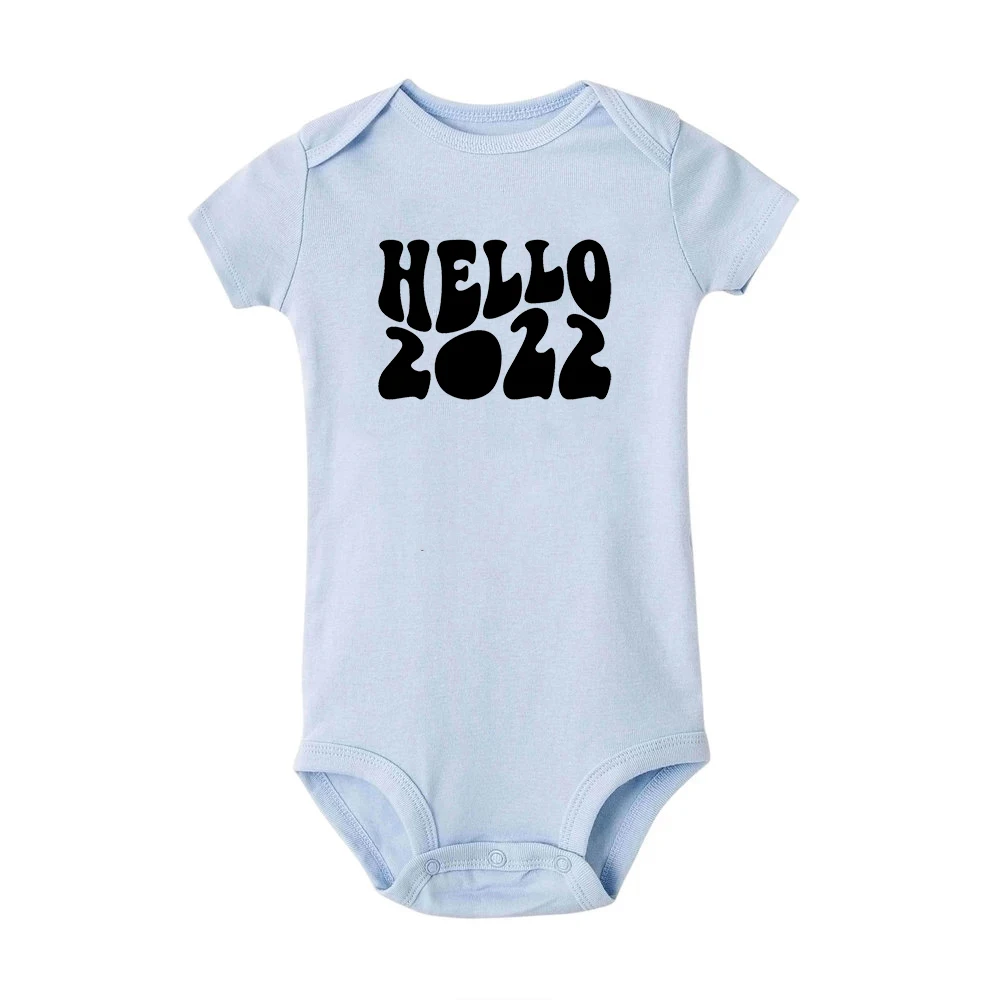 Hello/2022 Летний комбинезон для новорожденных мальчиков и девочек, короткий рукав, с надписью «беременность С Новым Годом», унисекс, Одежда для младенцев
