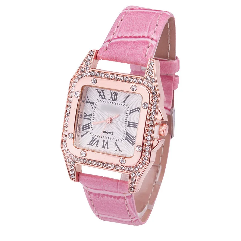 Часы женские кварцевые с квадратным циферблатом и кожаным ремешком