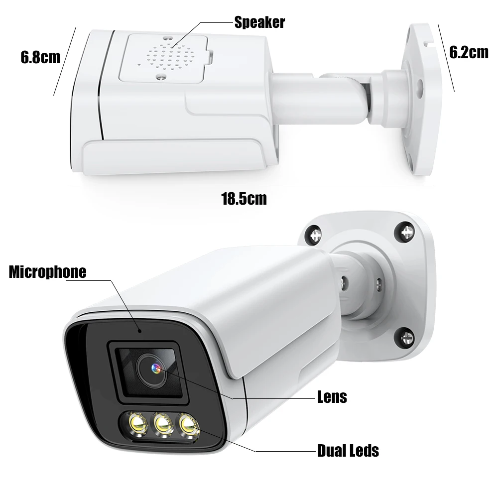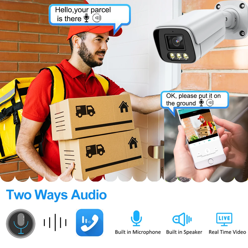 IP-камера Наружная цилиндрическая с датчиком движения, H.265 + 4K, 8 Мп, POE, 3 Мп, 5 МП, двухстороннее аудио, XMeye