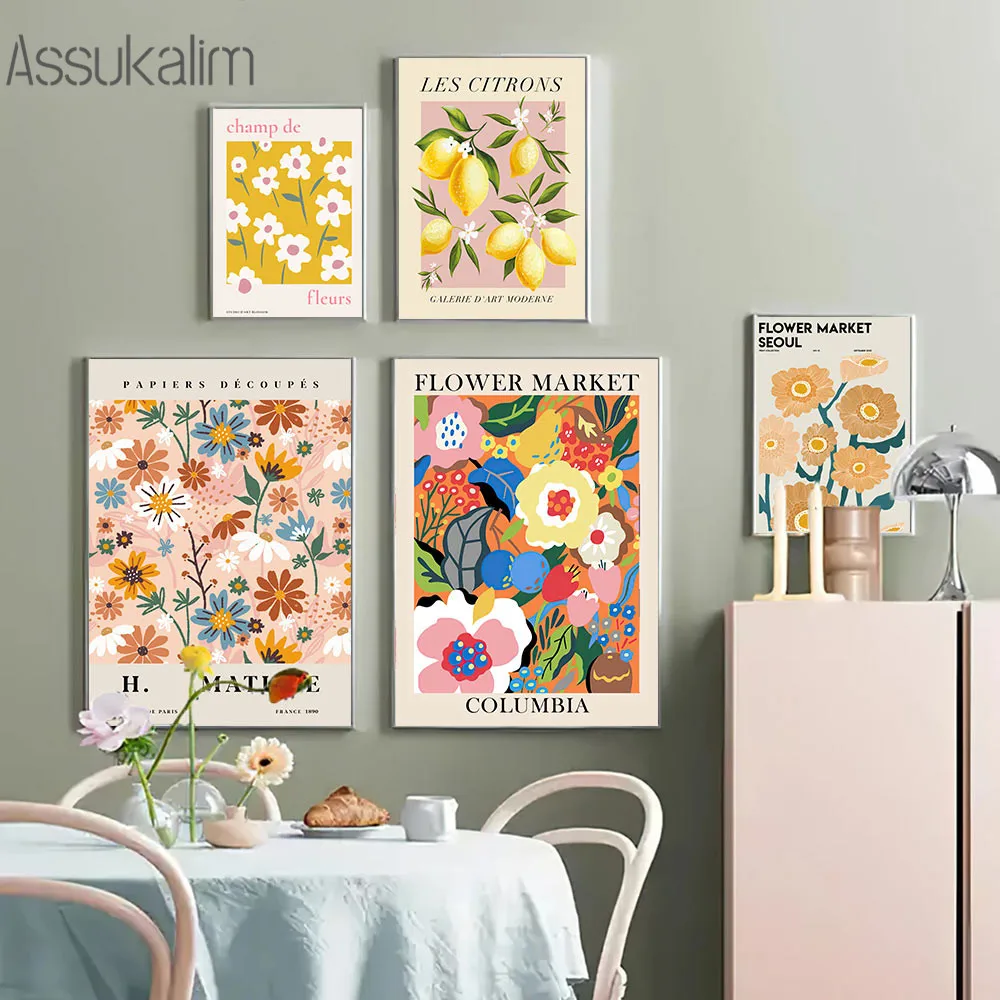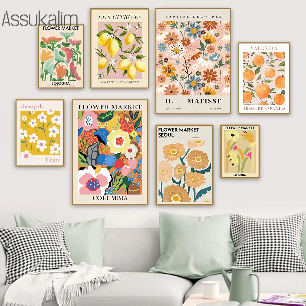 Лимон, фрукты, цветок, рынок, настенная Картина на холсте, винтажный абстрактный постер Матисса, настенные картины в скандинавском стиле для декора гостиной