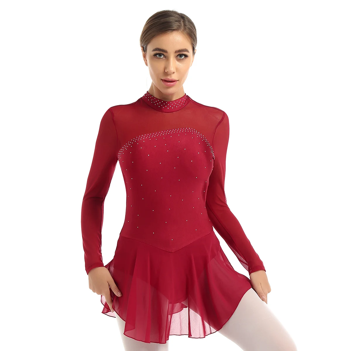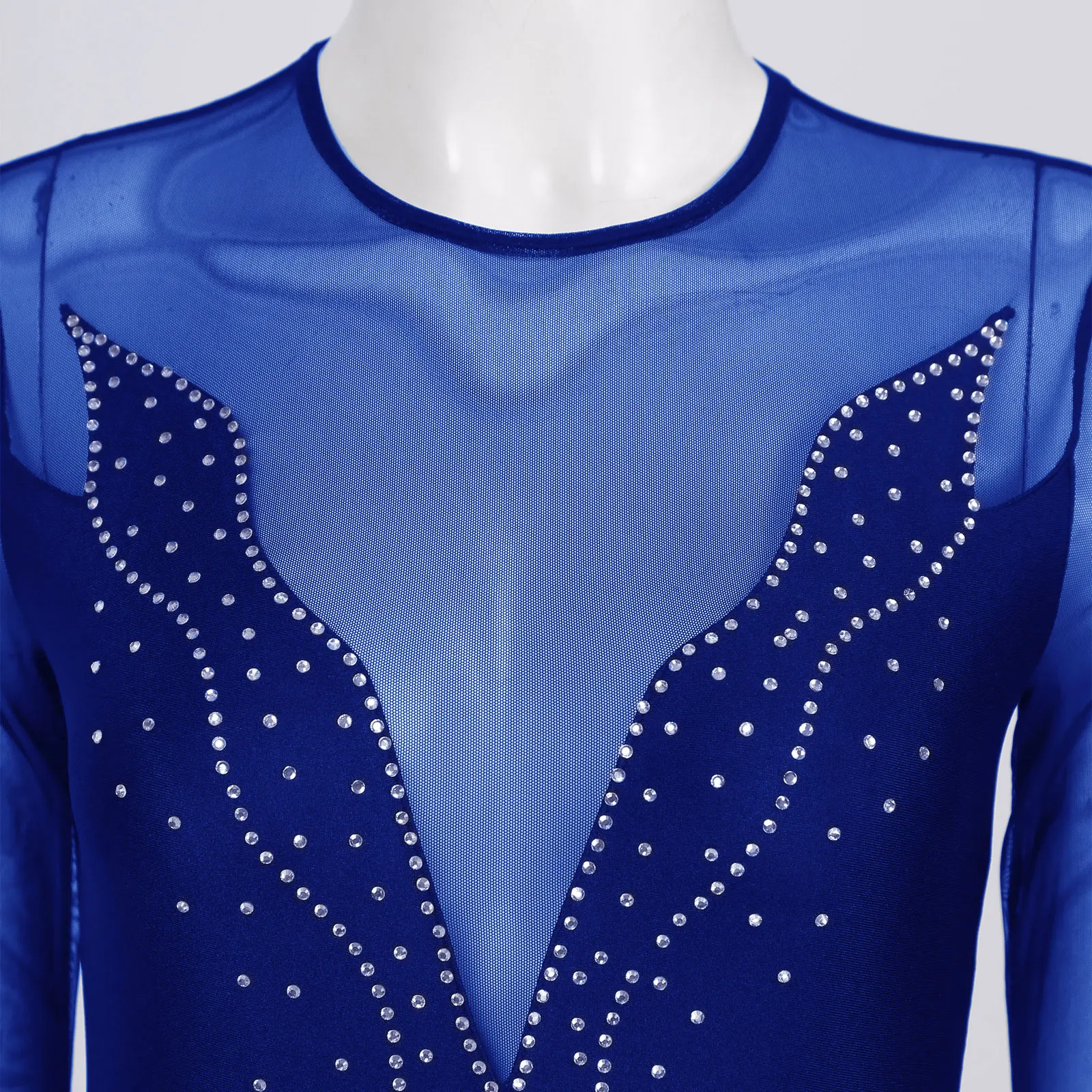 Женский гимнастический купальник с длинными рукавами, блестящий балетный костюм, Одежда для танцев, платье для фигурного катания, костюм для выступления на сцене