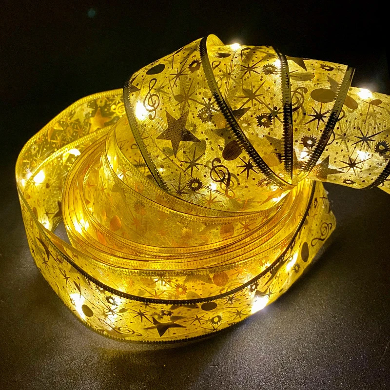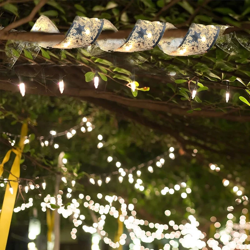 5 м рождественские Ленточные банты с 50 огнями, двухслойные светоди...