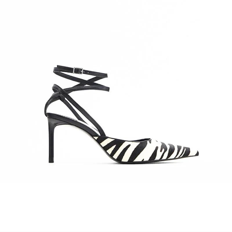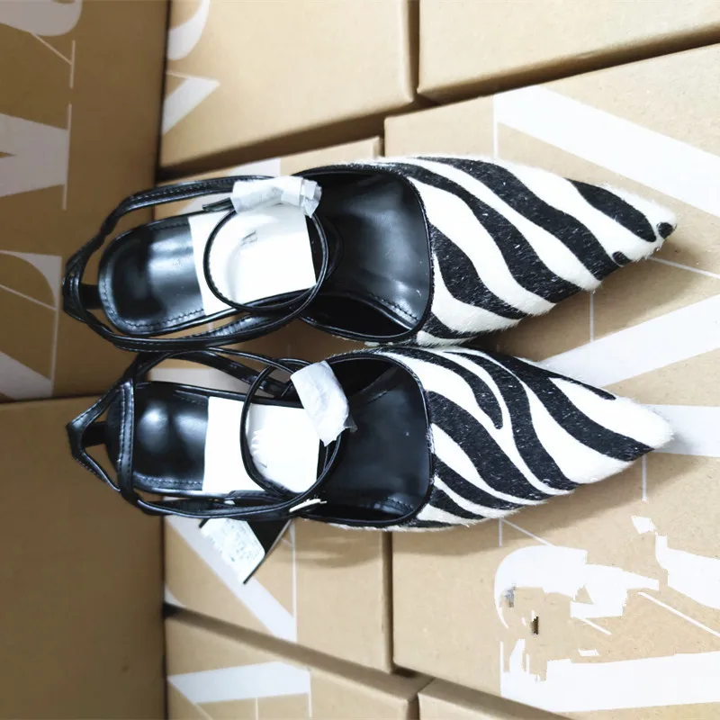 Женские сандалии на шпильке ZaZa 2022 года с зеброй, женские повсед...