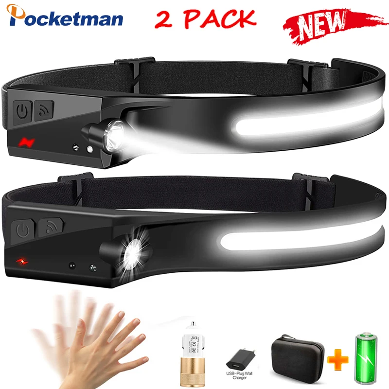 Мощный COB светодиодный светильник USB Перезаряжаемый налобный фонарь Портативный водонепроницаемый светильник встроенный аккумулятор кемпинговый головной светильник