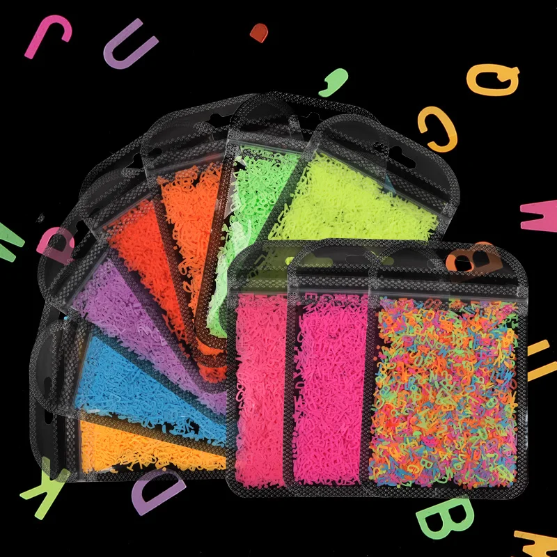 Набор из 10 пакетов, флуоресцентные буквы, блестки, блестки, слайм, наполнение эпоксидной смолой, форма для самостоятельного изготовления, рукоделие, сырье