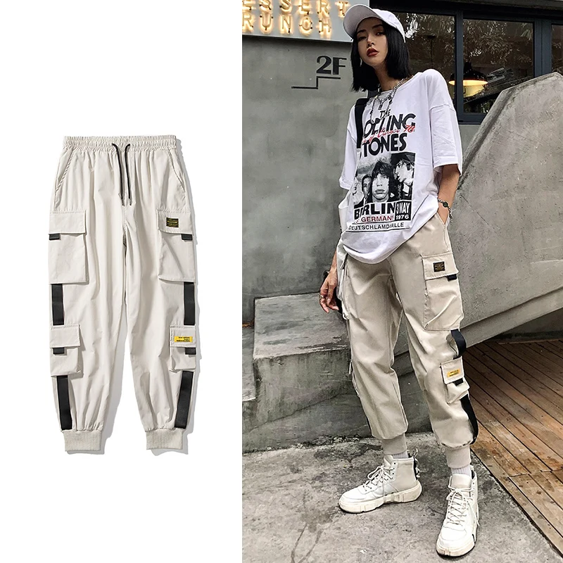 Джоггеры-шаровары с лентами, мужские брюки-карго, уличная одежда 20...