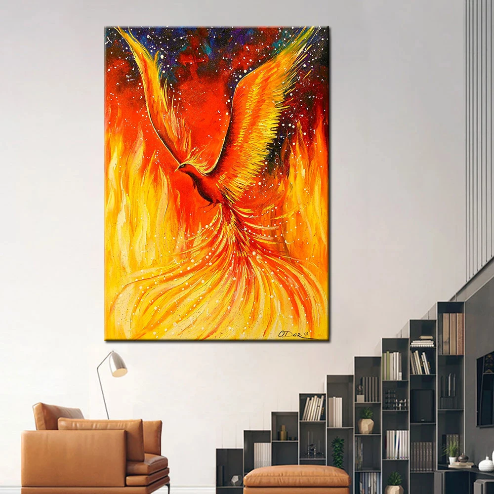 Роскошная абстрактная животная Феникс Холст Картина маслом настенное искусство картины подарки для детей кукро для гостиной украшение дома