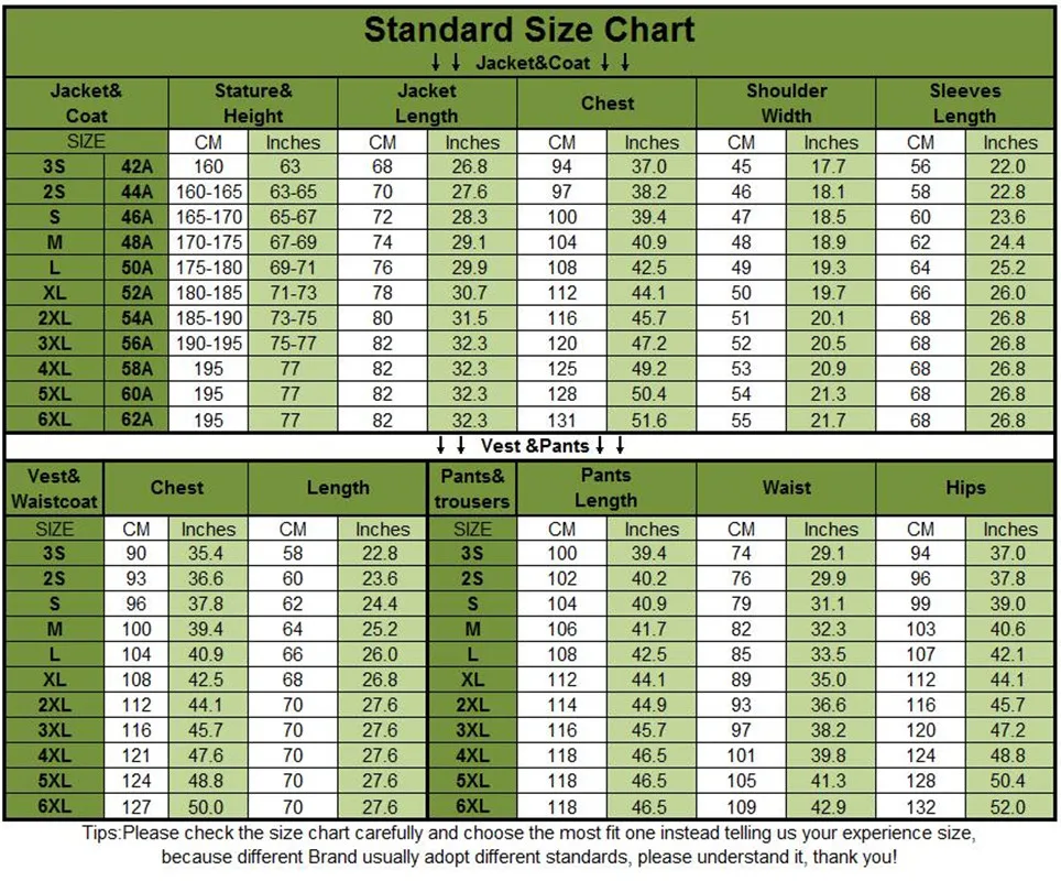 ***Один комплект костюмов включает в себя одну куртку, один жилет и одну часть штанов.