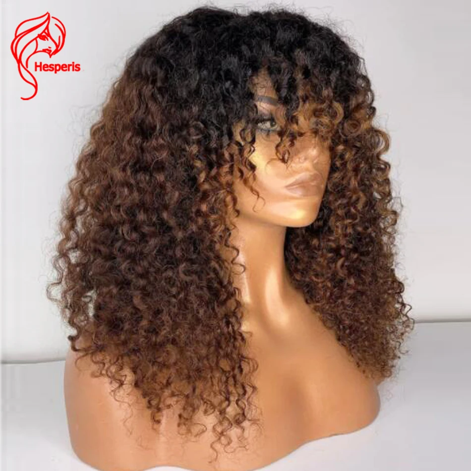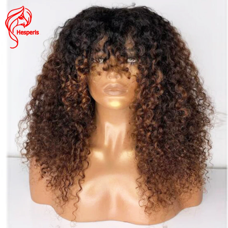 Hesperis Омбре кудрявые человеческие волосы парики Borwn бразильские волосы Remy головы Топ Полная машина сделанные человеческие волосы парики с челкой для черных женщин