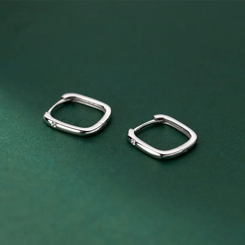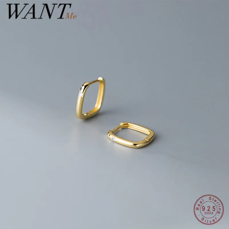 Женские серьги-кольца WANTME из серебра 925 пробы с квадратными блестящими фианитами