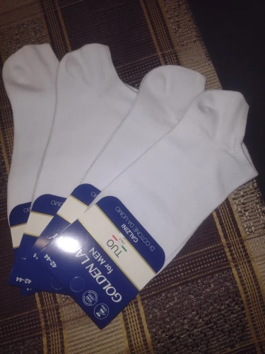 Носки отличного качества. Пятая пара уже на парне. Ему понравились. Размер обуви у него 43. Заказывали белые - Bianco, размер - 42-44. Забрали на кассе в Пятерочке. Доставка быстрая. Продавца рекомендуем. Будем заказывать еще