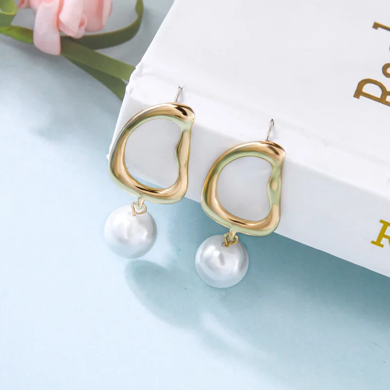 Новый дизайн, имитация стекла, жемчуг, минималистичные Висячие серьги для женщин, подарки для вечерние, золотой цвет, модные ювелирные изделия, оптовая продажа
