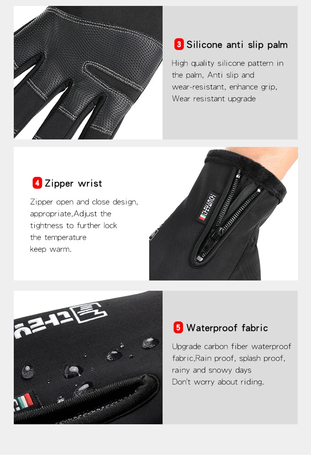 1. Обновленная конструкция внутреннего и внешнего двухслойного сенсорного экрана: более чувствительный дизайн сенсорного экрана, с откидной крышкой на большом и указательном пальцах, более удобно использовать перчатки для ответа на телефон и воспроизведения на мобильный телефон.2. Теплый флис: внутренняя часть флиса сделана из флиса, чтобы сохранить тепло. Измеренный тепловой эффект может достигать минус 5 градусов +, что может эффективно противостоять холодному ветру и защитить ваши руки от замерзания в течение длительного времени.3. Надежная защита: профессиональная защита рук, Высококачественная силиконовая клетка на ладони, нескользящая и износостойкая, так что сцепление сильнее, сцепление более гибкое, И износостойкость модернизирована.4. Браслет на молнии, застежка-молния, застежка-молния, правильная Регулировка эластичности, для обеспечения комфортного движения, а также для дальнейшей блокировки температуры и сохранения тепла.5. Улучшенная нейлоновая водонепроницаемая ткань высокой плотности, непромокаемая, водоотталкивающая, дождевая и снежная, не нужно беспокоиться о езде.