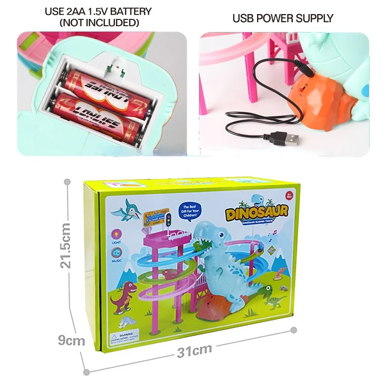 Новые альпинистские лестницы игрушки динозавр горка железная дорога игрушки развлечения интеллектуальное развитие интересный подарок забавная музыка Используйте 2 батареи AA1.5v (не входят в комплект) или USB (подарок), оба. Наконечник:Вам нужно подготовить отвертку.