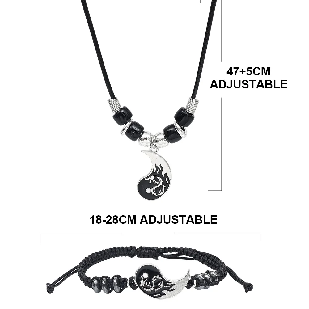 Браслеты для пар Tai Chi Yin Yang Подвеска из сплава Регулируемая плетеная цепочка браслет ожерелье подходящие для влюбленных браслеты ожерелья Набор