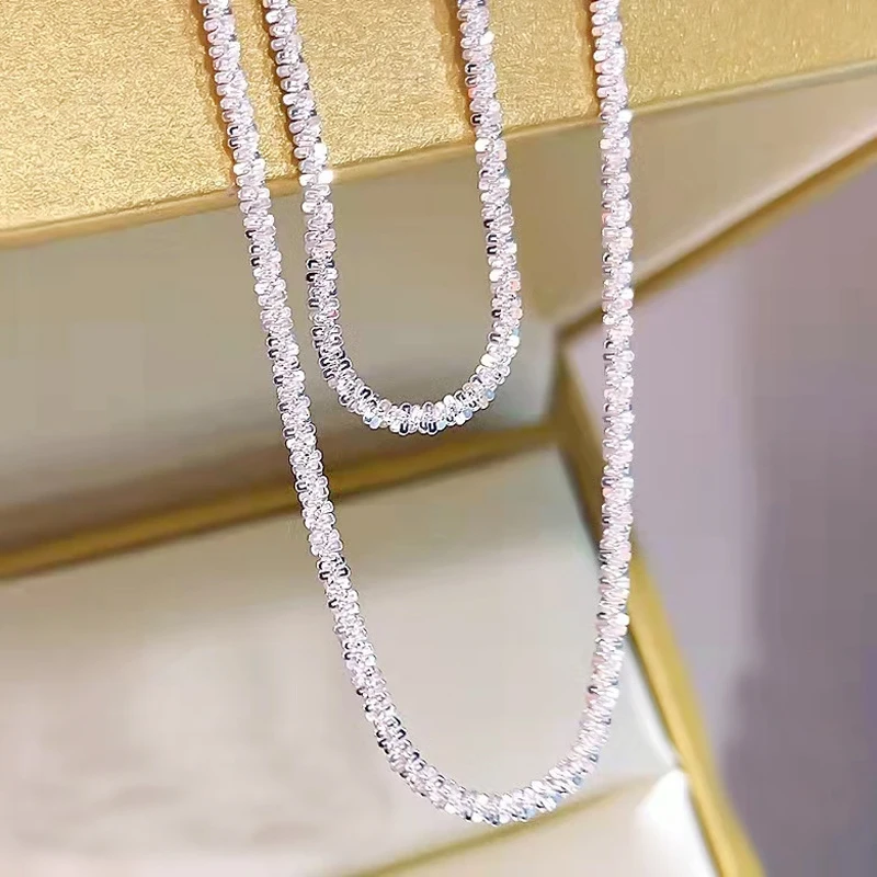 Женское колье из серебра 925 пробы, с блестящей цепочкой до ключиц