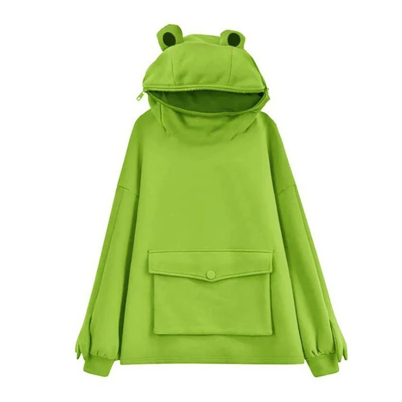 Женский пуловер в стиле Харадзюку с лягушкой, толстовка с капюшоном...