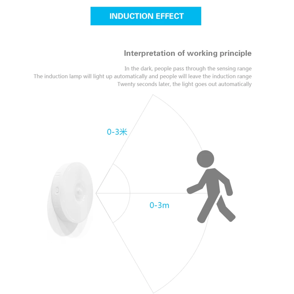 Светодиодный ночсветильник для кабинета, шкафа, туалета, беспроводной клейкий датчик движения, регулируемая яркость, перезаряжаемая лампа для детской комнаты, для прихожей