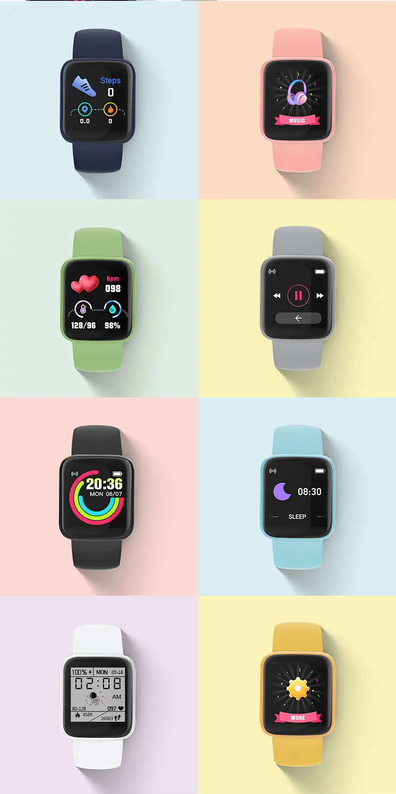 Фитнес-трекер Macaron Y68 pro D20 Pro с поддержкой Bluetooth, пульсометром и тонометром