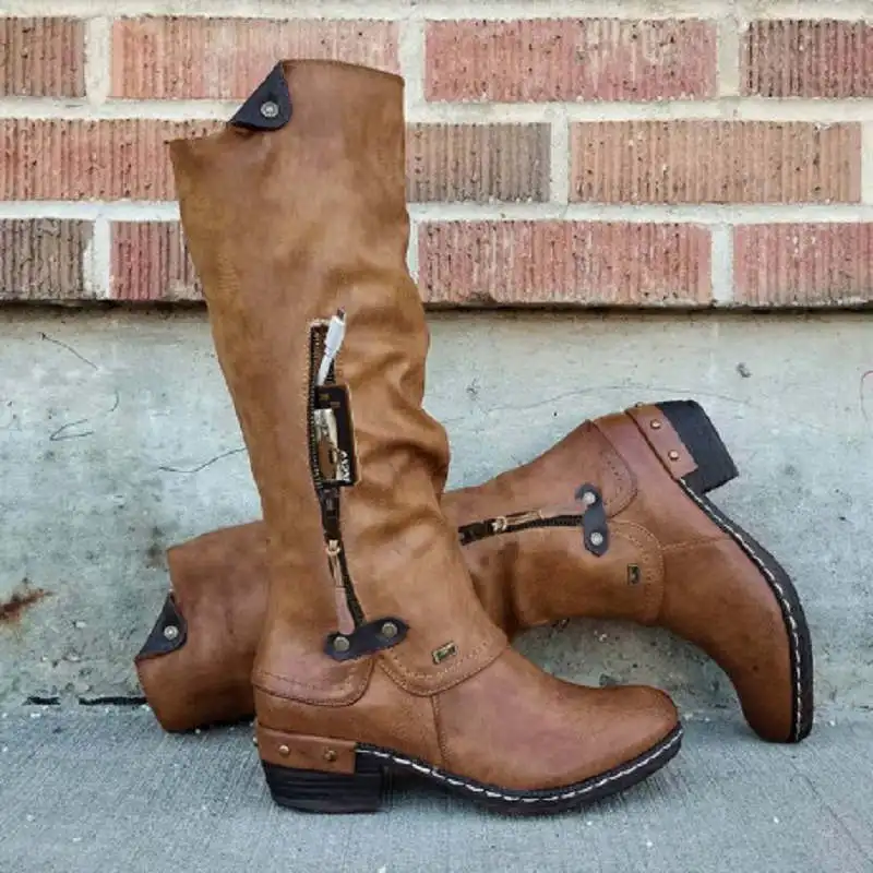 Женские винтажные ковбойские сапоги до колена, с круглым носком и м...