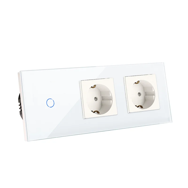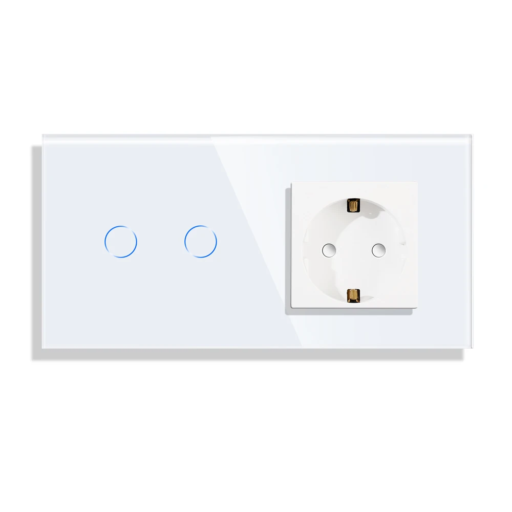 Белый сенсорный выключатель Bingoelec и настенная розетка с прозрачной стеклянной панелью для улучшения дома