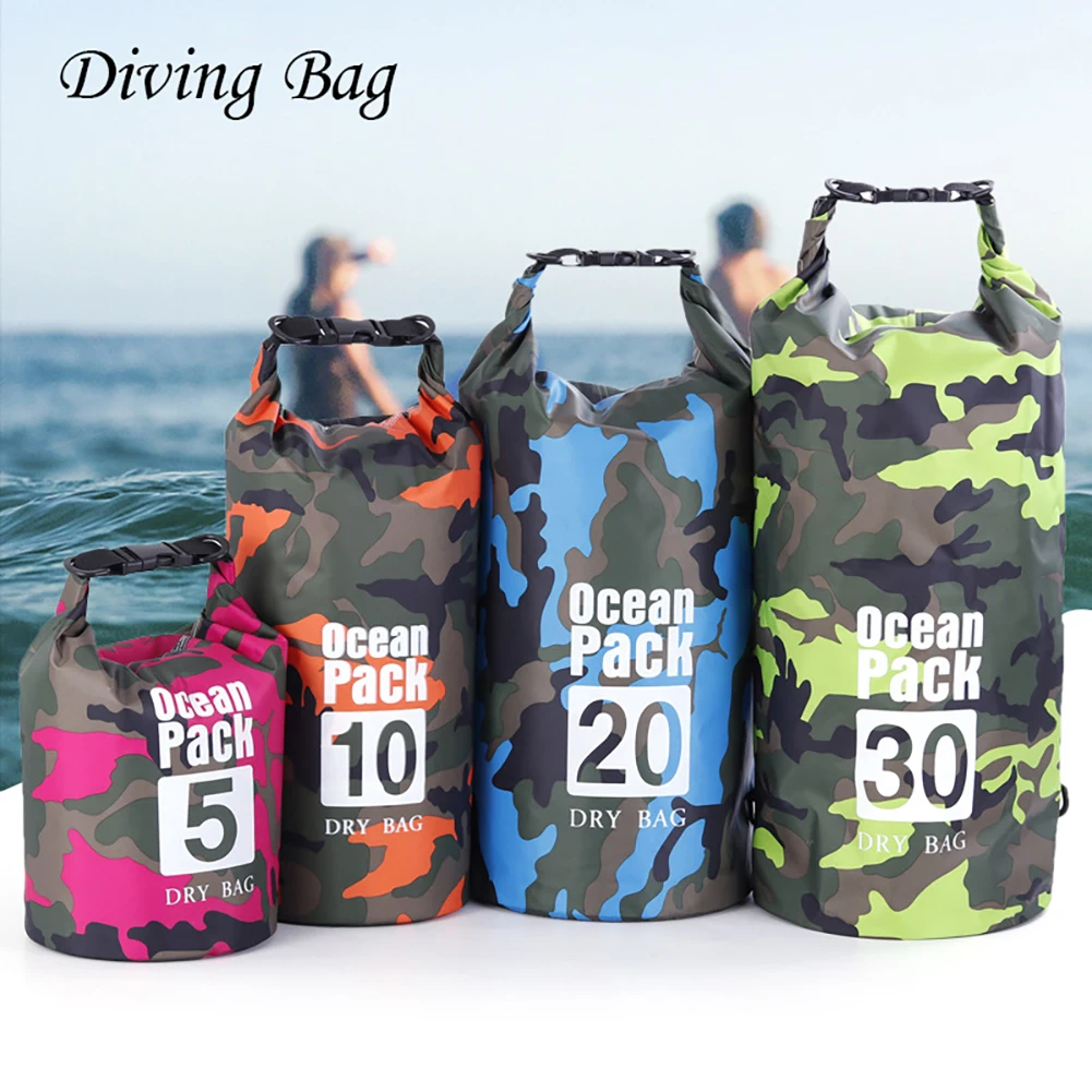 Водонепроницаемая камуфляжная сумка для дайвинга, 25102030 л, пляжный мешок для рафтинга, прогулок на лодке, каякинга, сухая дорожная сумка для хранения