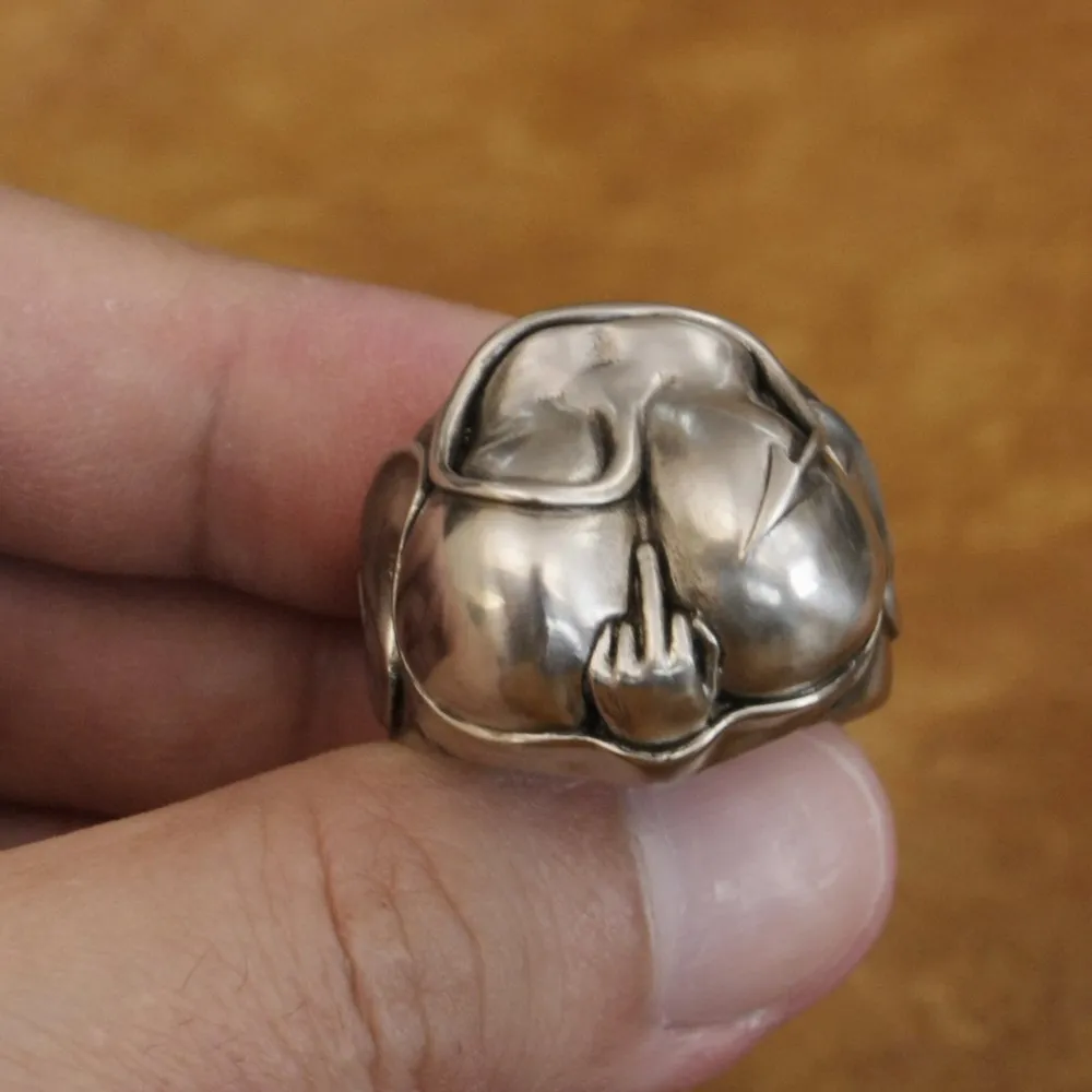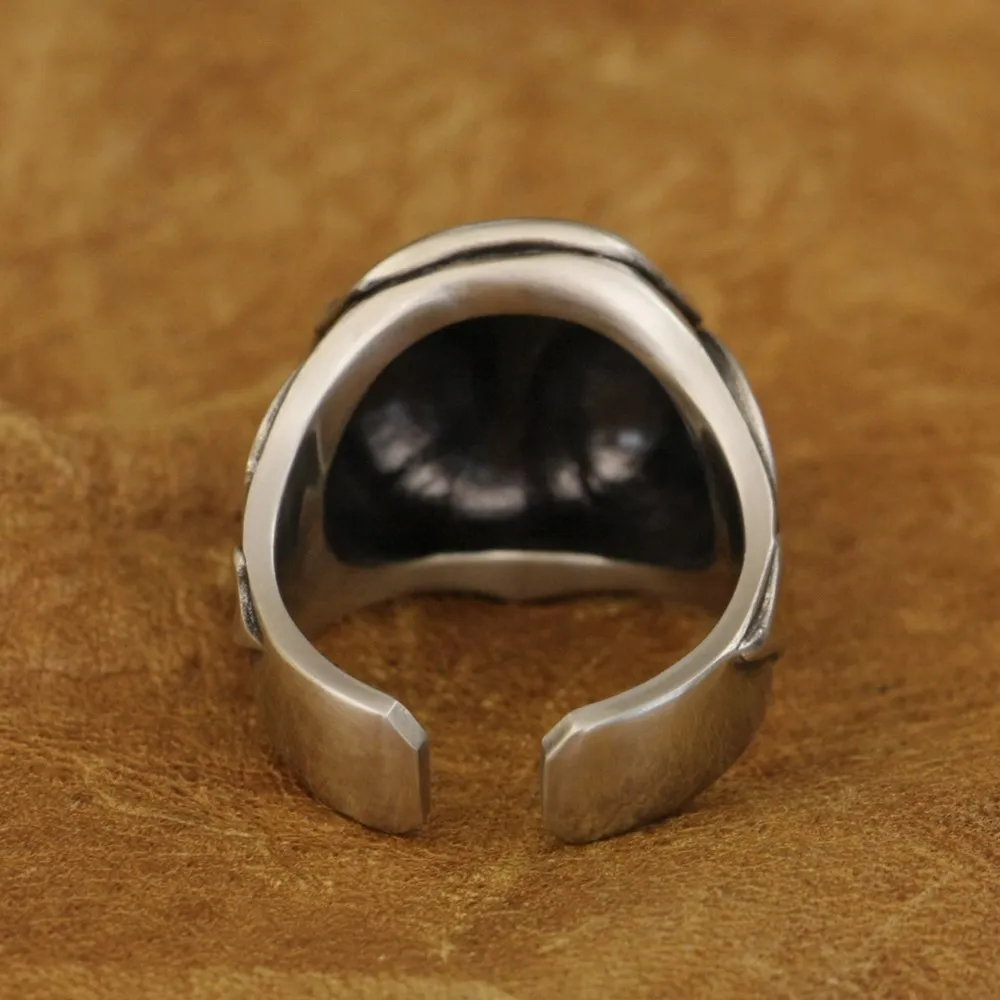 Это уникальное украшение станет прекрасным подарком для любого случая!Состояние:Новый и ручной работы в идеальной готовойМатериал:МельхиорВысота лица:Прибл. 32 ммВес:Прибл. 19,5 граммРазмер США:#7 ~ #15