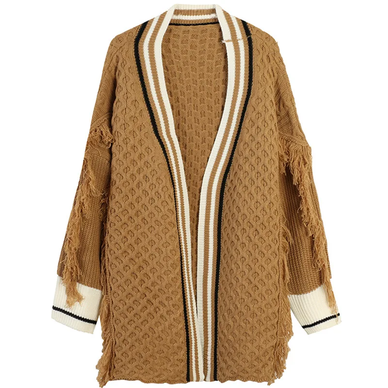 Женский винтажный трикотажный кардиган с бахромой и длинными рукавами