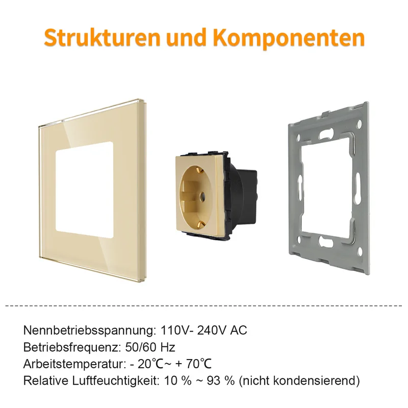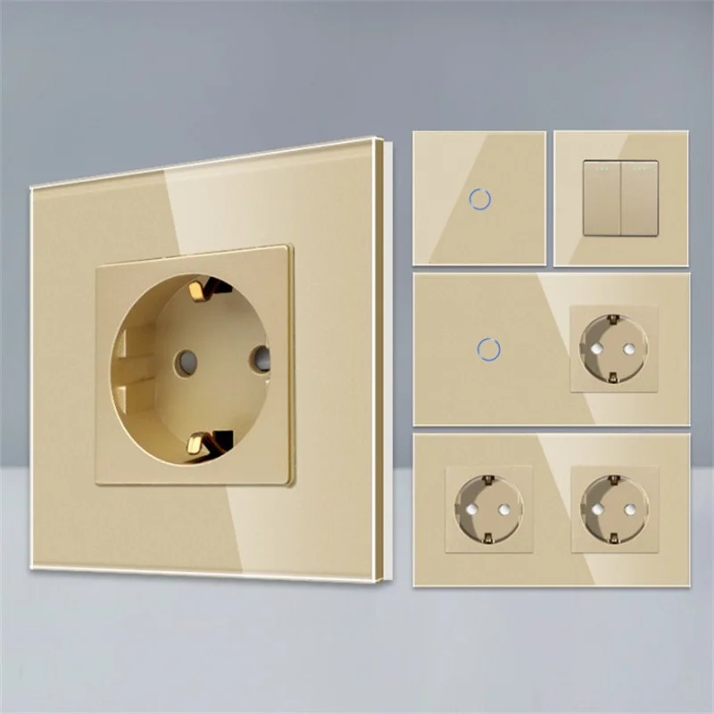 Bingoelec, сенсорный переключатель, золотые и электрические розетки с хрустальной стеклянной панелью, товары для дома