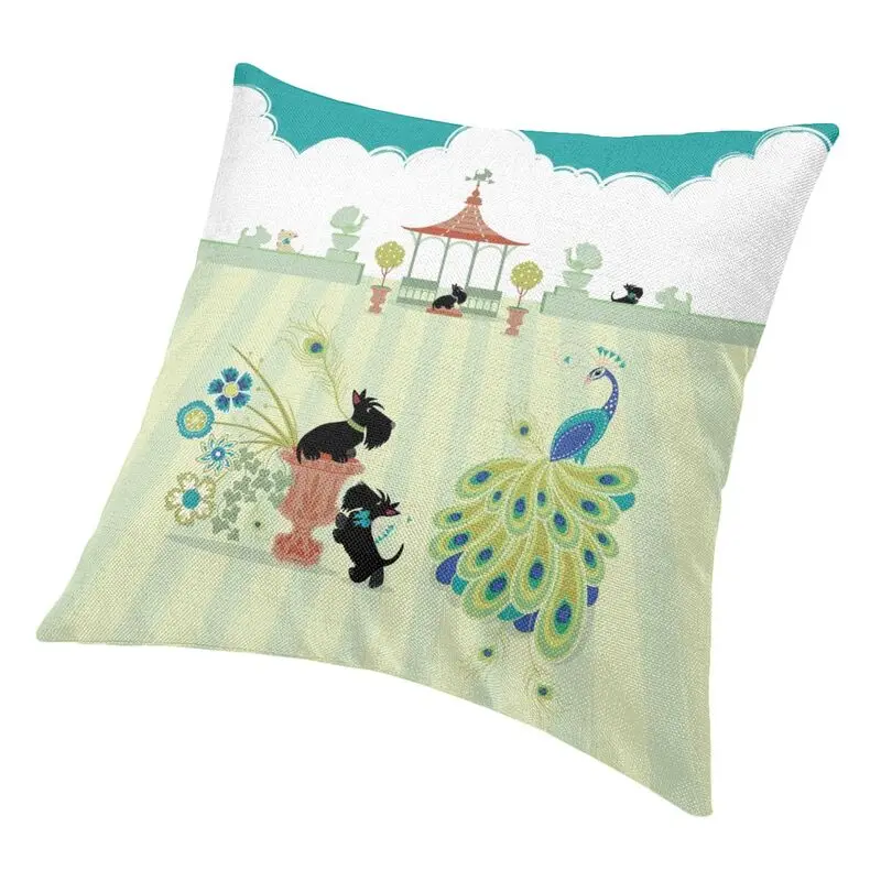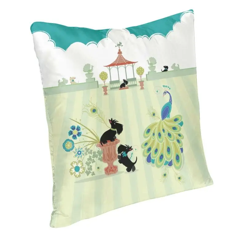 Квадратная наволочка для подушки с принтом скотти и павлинов, 3D дв...