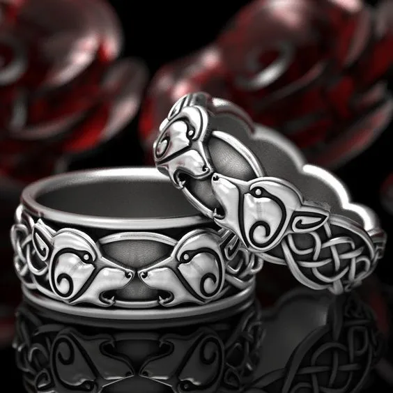 Мужскоеженскоемужское кольцо с кельтским узлом, пиратский волк в ск...