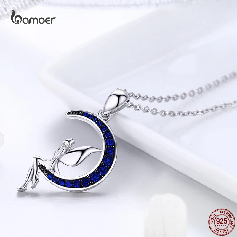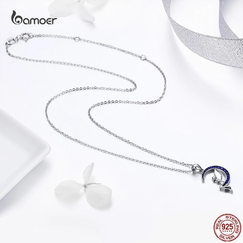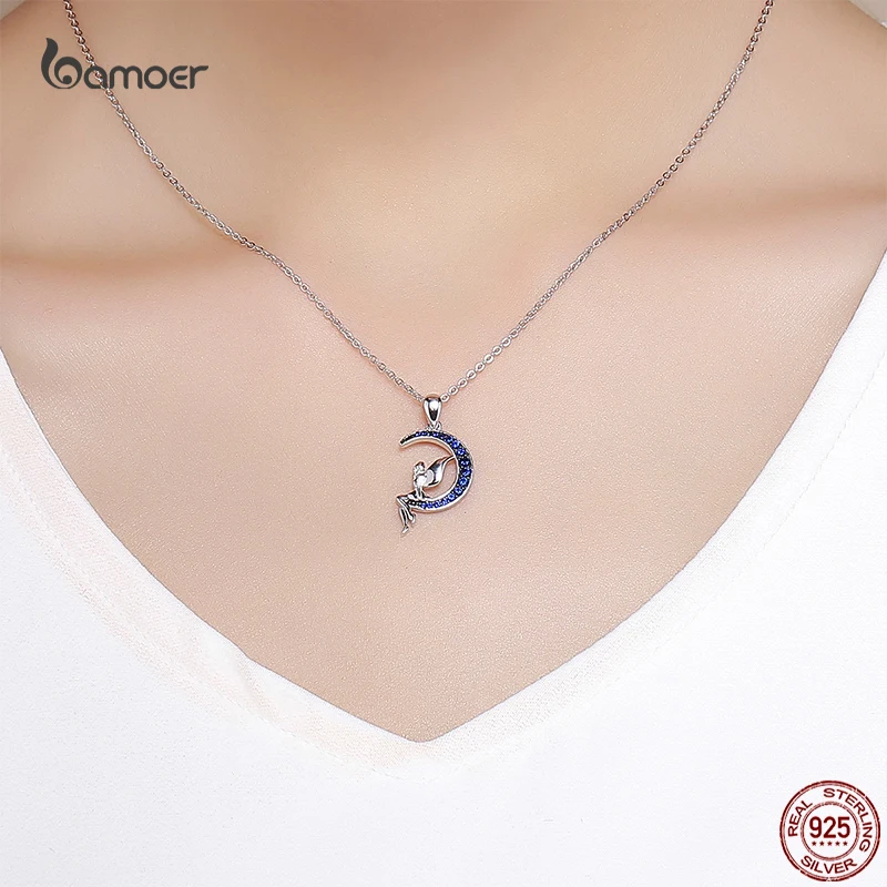 Женское Ожерелье-фея Bamoer, элегантное ожерелье из стерлингового серебра 925 пробы с подвеской в виде Луны, модное ювелирное изделие на годовщину
