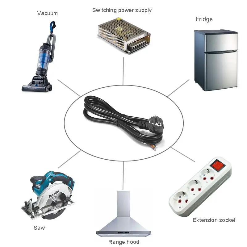 Штепсельная Вилка европейского стандарта, кабель 1,5 м, 2 мм, кабель в полоску, удлинитель питания для электрических вентиляторов, вакуумные посудомоечные машины
