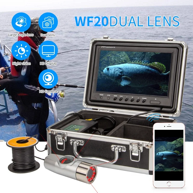 Подводная камера WF20 с двумя объективами, рыбопоисковый прибор, 7-дюймовый дисплей для сельского хозяйства и спасательной техники, кабель 1530 м, система обнаружения рыбы