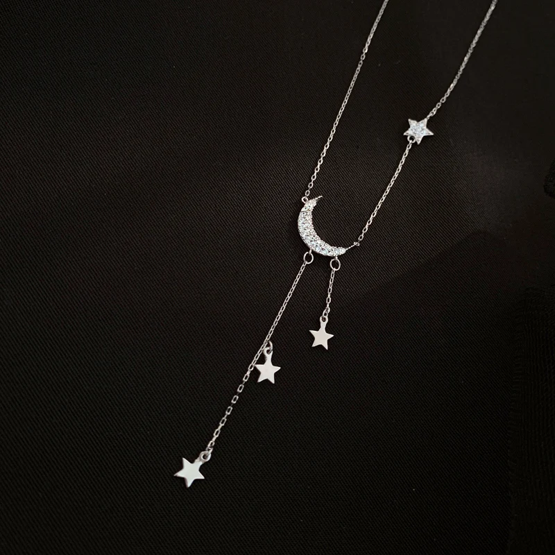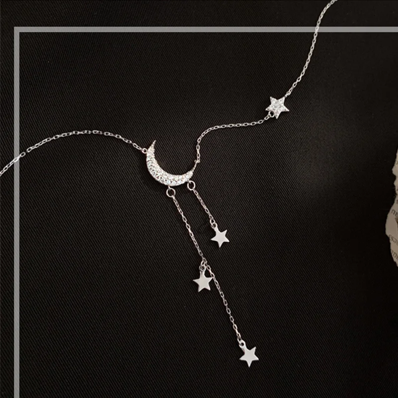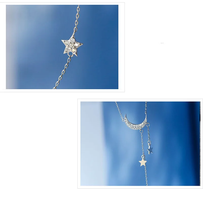 Новинка 2022, модные ожерелья-чокер из стерлингового серебра 925 пробы со звездой и луной, блестящая цепочка, женские свадебные ювелирные украшения на шее, CZ
